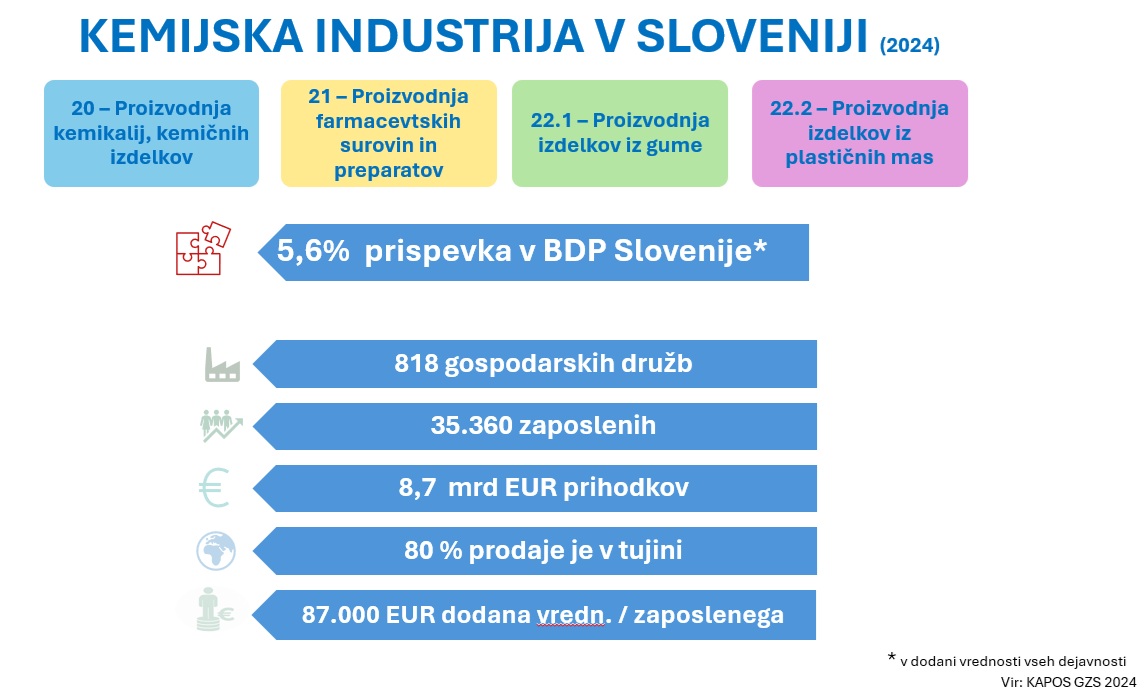 Slovenska kemijska industrija je del te velike evropske kemijske industrije in ima seveda kot celota zelo pomembno vlogo za Slovenijo kot državo.